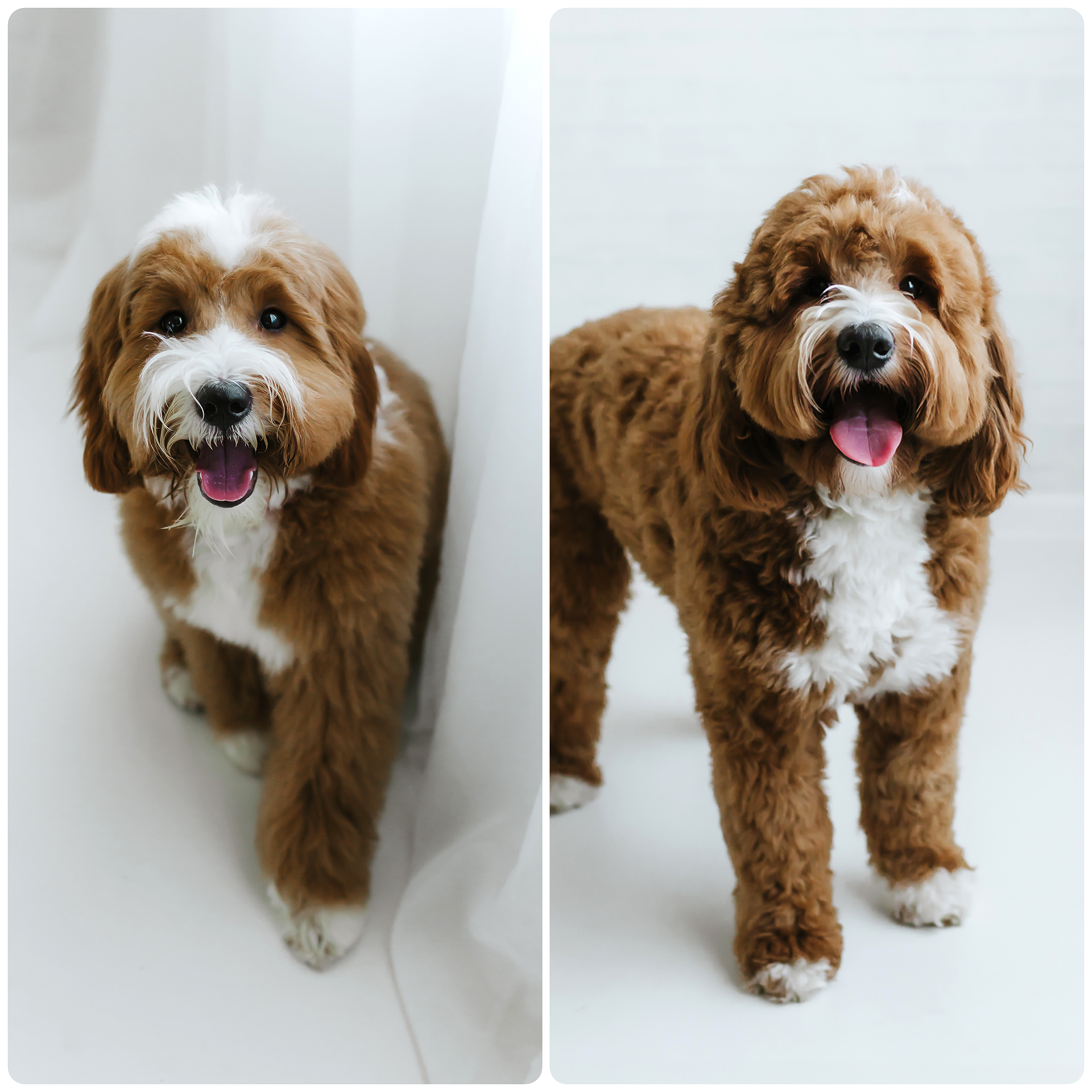 We can’t wait to see the gorgeous puppies this pairing produces. Gracie weighs 30 pounds, and Teddy weighs 28 pounds.